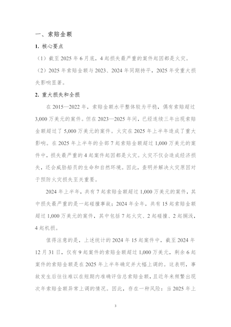 该报告聚焦2025年上半年全球船舶保险市场核心态势,涵盖保费变化、重大赔案特征、各类险种风险演变等关键内容,尤其对机械设备类赔案报案未决周期等实务重点问题进行了深度剖析,兼具数据支撑与实践指导价值,将为航运及保险行业从业者的决策与运营提供重要参考。