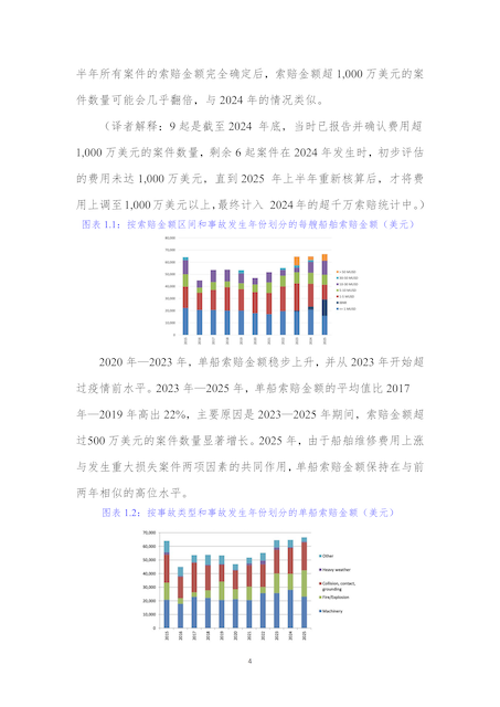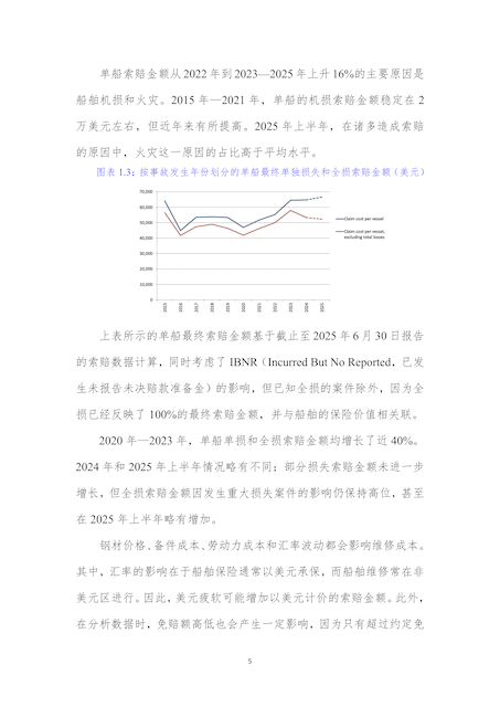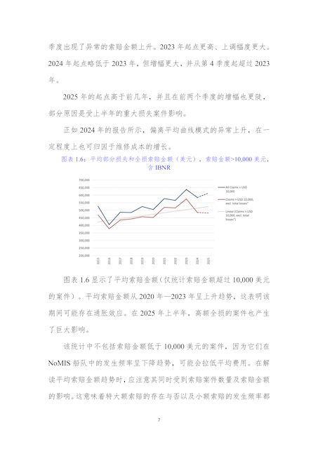 为助力行业精准把握船舶保险市场动态,提升风险应对能力,协会近日完成北欧船舶保险协会Cefor2025年中期船舶保险报告的翻译工作,现分期发布供行业同仁学习参考,本期为第一期,聚焦第一章“索赔金额”主题。